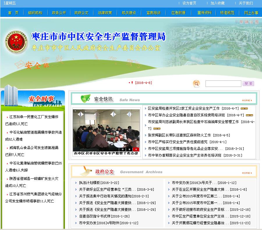 市中區(qū)安全生產(chǎn)監(jiān)督管理局成立于2001年9月,是綜合管理全區(qū)安全生產(chǎn)工作的行政執(zhí)法機構(gòu),是區(qū)政府監(jiān)督管理安全生產(chǎn)工作的職能部門,也是區(qū)安全生產(chǎn)委員會日常辦事機構(gòu)。為適應(yīng)安全生產(chǎn)工作需要,加強對安全生產(chǎn)的監(jiān)督管理,預(yù)防和減少各類安全生產(chǎn)事故,建立健全統(tǒng)一、高效、職責(zé)明確的安全生產(chǎn)監(jiān)督管理機構(gòu),制定本工作職責(zé)。 |
