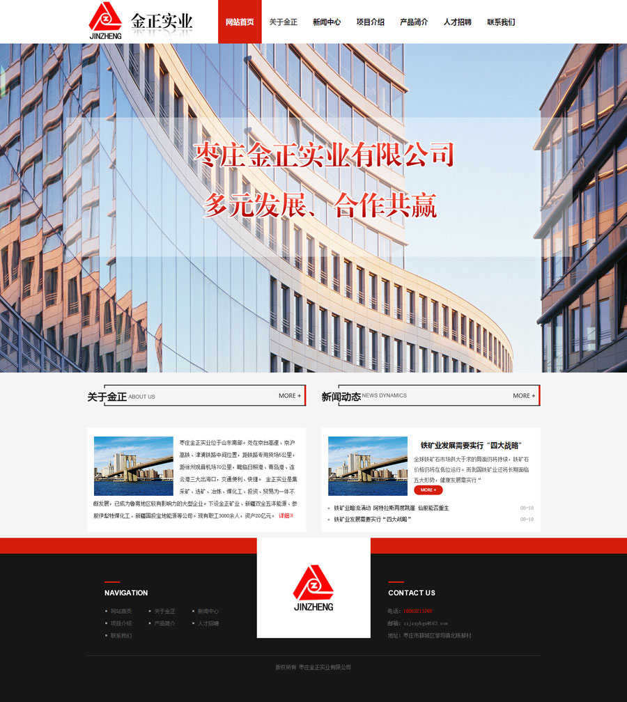 祝賀金正實業(yè)有限公司網(wǎng)站上線 公司介紹: 棗莊金正實業(yè)位于山東南部。處在京臺高速、京滬高鐵、津浦鐵路中間位置,距鐵路專用貨場5公里,距徐州觀音機場70公里,毗臨日照港、青島港、連云港三大出?,交通便利、快捷。 金正實業(yè)是集采礦、選礦、冶煉、煤化工、投資、貿(mào)易為一體不斷發(fā)展,已成為魯南地區(qū)較有影響力的大型企業(yè)。下設(shè)金正礦業(yè)、新疆雙全五洋能源、并參股伊犁特煤化工、新疆國投寶地能源等公司。現(xiàn)有職工3000余人,資產(chǎn)20億元。先后獲得棗莊百強企業(yè)、突出貢獻企業(yè)、誠信經(jīng)營企業(yè)、納稅十強企業(yè)、山東省工會工作先進企業(yè)等榮譽稱號。 金正礦業(yè)年產(chǎn)鐵精粉60萬噸,金正實業(yè)年產(chǎn)鑄造用生鐵26萬噸,主要銷往江蘇、浙江、福建、安徽、河北、山東等地,深受廣大客戶好評。 公司始終秉承“多元發(fā)展、合作共贏”的經(jīng)營理念,遵循“精誠團結(jié)、銳意進取”的企業(yè)精神。竭誠為客戶提供優(yōu)質(zhì)的產(chǎn)品和服務(wù)。真誠歡迎各界同仁前來指導(dǎo)、合作,我們愿與您風雨同舟、攜手共創(chuàng)美好未來。 棗莊金正實業(yè)有限公司