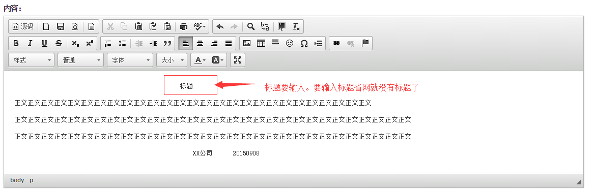 5、      輸入正文  標題要輸入(如果不輸入標題省網(wǎng)就沒有標題了。)