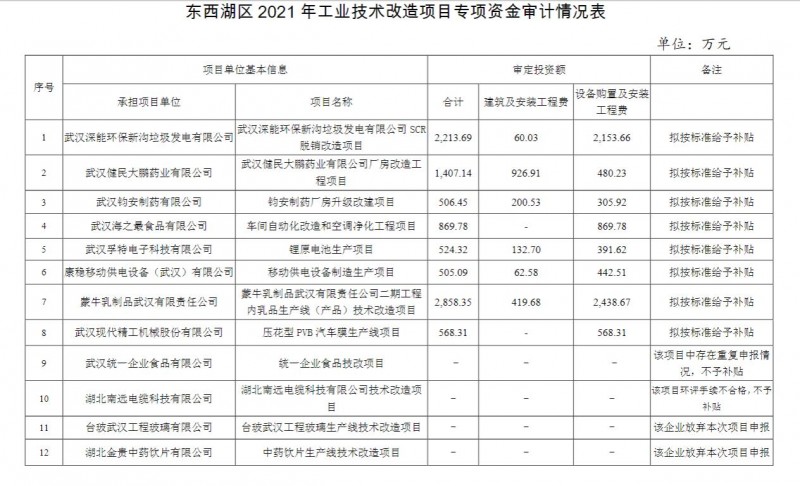 東西湖區(qū)2021年工業(yè)技術(shù)改造專項(xiàng)補(bǔ)貼資金審計(jì)情況公示
